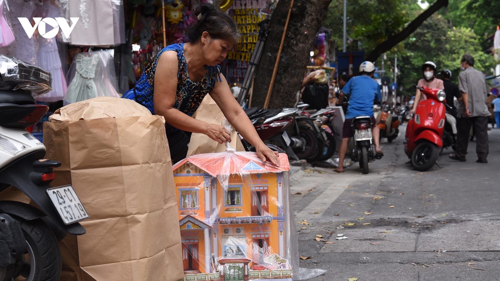 VOV.VN - Các sản phẩm ở phố Hàng Mã vô cùng đa dạng, từ những những món đồ phổ biến như quần áo, ngựa, mũ nón, tiền vàng... đến các mặt hàng bắt kịp xu hướng hiện nay như nhà lầu, laptop, điện thoại, ô tô.