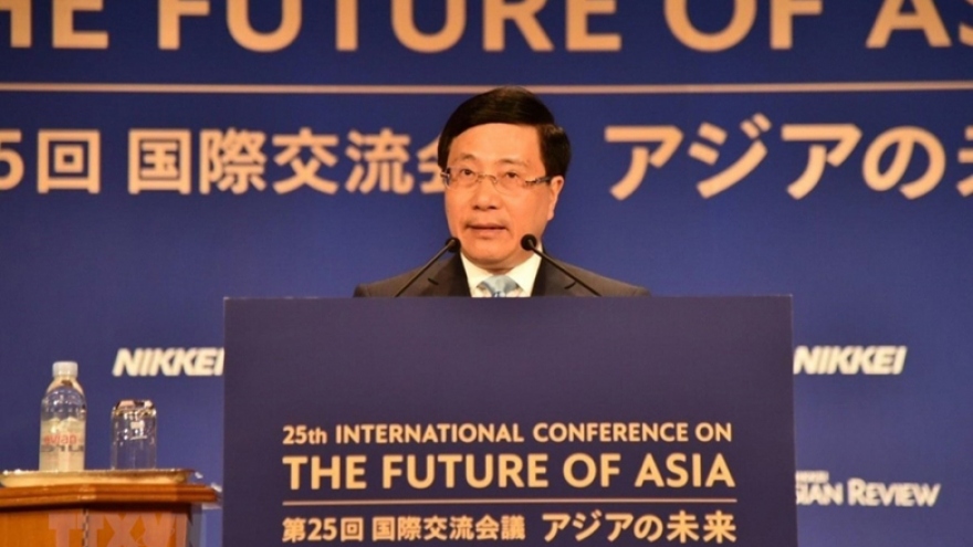 VOV.VN - Từ ngày 26 đến 27/5, Phó Thủ tướng Thường trực Chính phủ Phạm Bình Minh sẽ tham dự Hội nghị tương lai châu Á lần thứ 27 theo lời mời của ông Tsuyoshi Hasebe, Chủ tịch kiêm Tổng Giám đốc điều hành Tập đoàn Nikkei; đồng thời thăm làm việc tại Nhật Bản.
