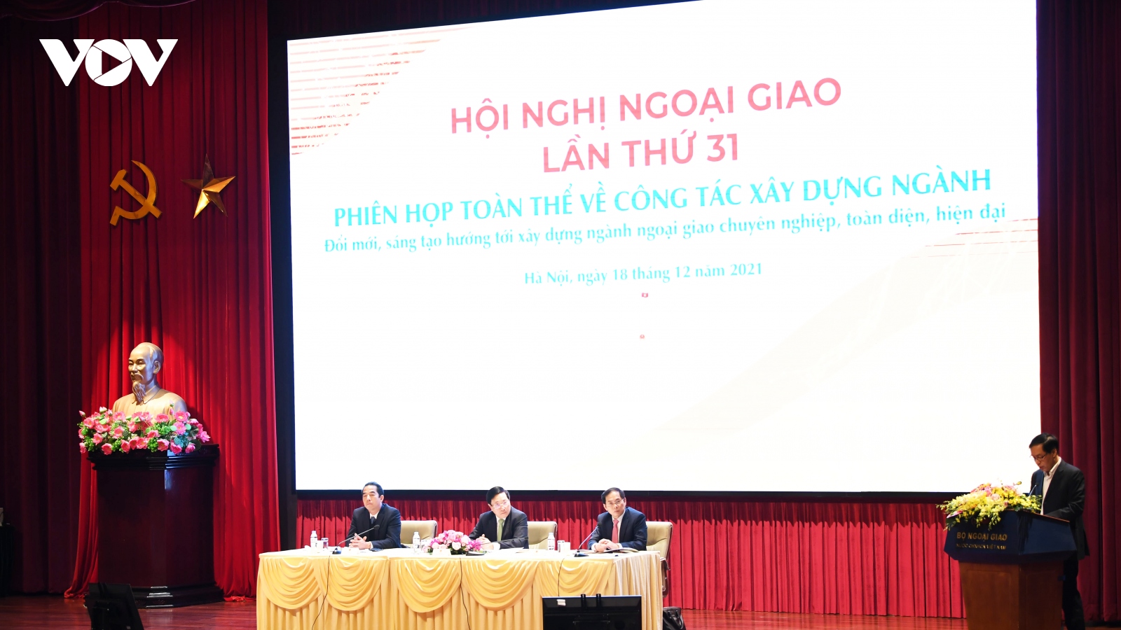 VOV.VN - Phó Thủ tướng Thường trực Phạm Bình Minh cho rằng xây dựng một nền ngoại giao toàn diện dựa trên ba trụ cột, toàn bộ các Bộ, ngành, địa phương, hệ thống chính trị, trên tất cả các lĩnh vực từ ngoại giao chính trị, an ninh-quốc phòng, kinh tế, văn hóa… là nhiệm vụ đặc biệt quan trọng.