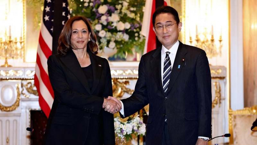 VOV.VN - Vào khoảng 18h chiều nay (giờ Nhật Bản), Thủ tướng Nhật Bản Kishida Fumio đã hội đàm với Phó Tổng thống Hoa Kỳ Kamala Harris nhân dịp bà sang Nhật Bản dự Quốc tang cố Thủ tướng Abe Shinzo.