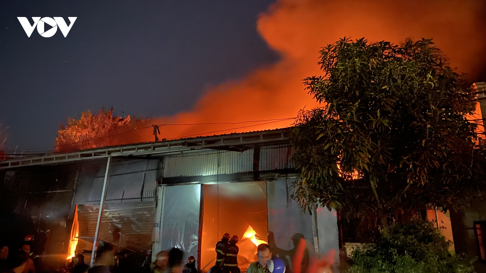VOV.VN - Tối 5/10, tại La Phù, Hoài Đức, Hà Nội đã xảy ra vụ cháy nhà xưởng, cột khói cao hàng chục mét. Đám cháy đã được khống chế và không có thiệt hại về người.