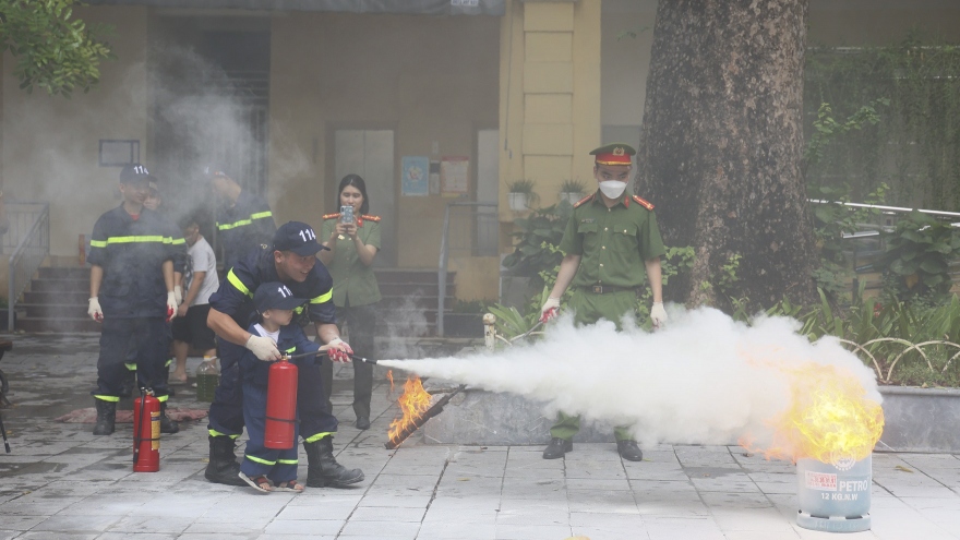 VOV.VN - Nhằm nâng cao nhận thức, kỹ năng PCCC&CNCH cho học sinh, sinh viên trên địa bàn, sáng 12/7, Công an quận Hoàn Kiếm (Hà Nội) phối hợp với UBND các phường tổ chức chương trình trải nghiệm “Chúng em là lính cứu hỏa”.