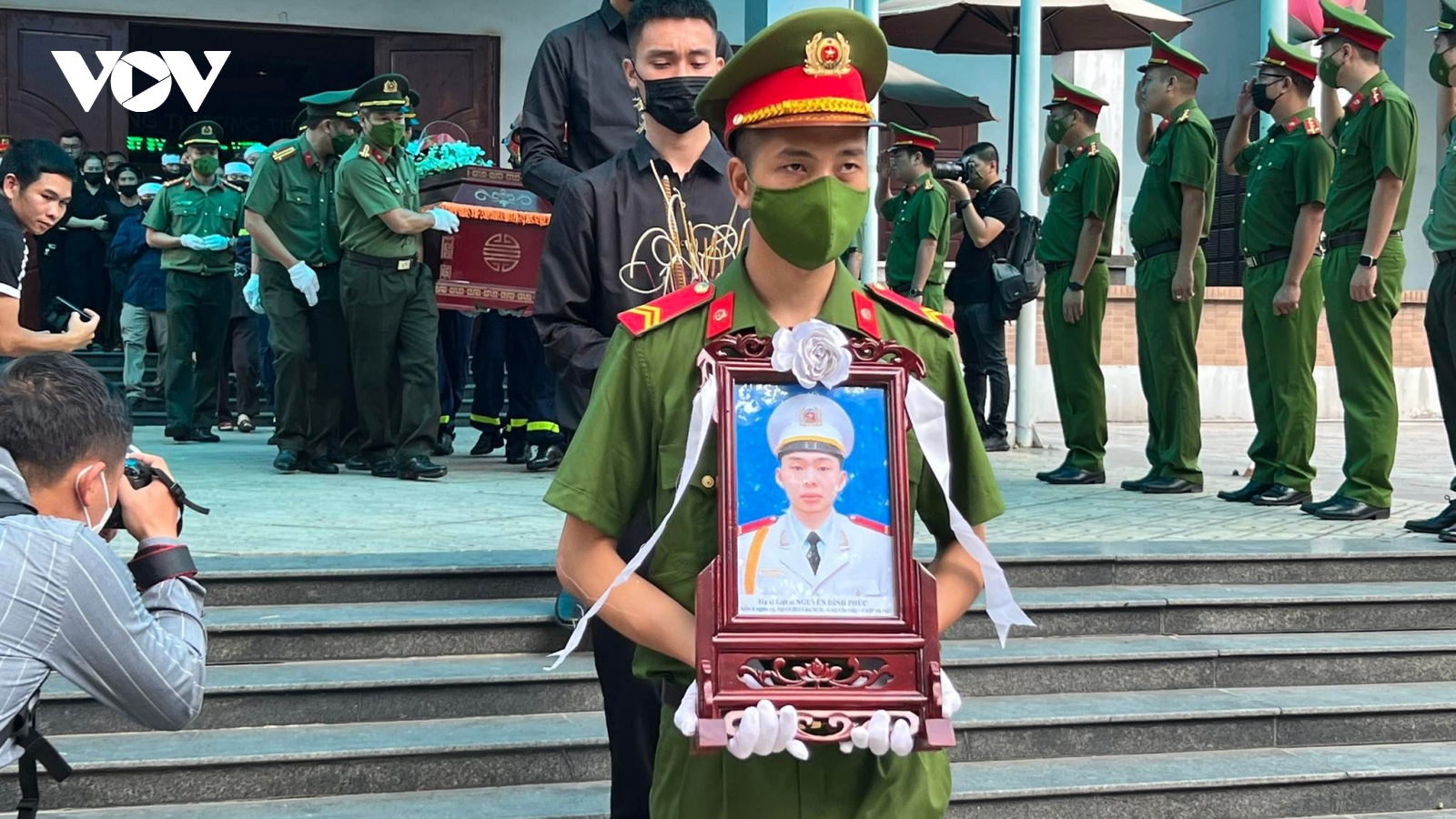 VOV.VN - Nghi lễ phủ Công an kỳ lên linh cữu 3 liệt sĩ PCCC đã diễn ra trang nghiêm trong lễ tang, người thân, đồng đội của các anh xúc động không cầm được nước mắt.