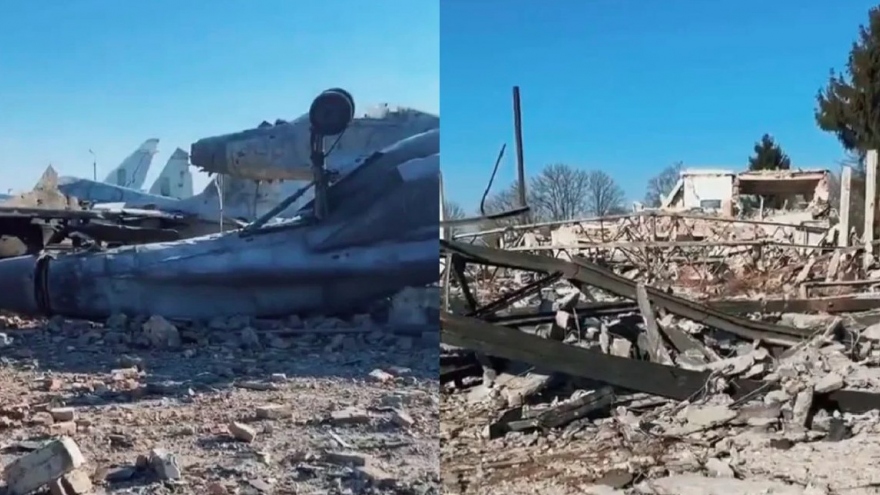 VOV.VN - Một video được công bố gần đây cho thấy các cuộc tấn công tên lửa của Nga đã khiến một căn cứ không quân của Ukraine bị phá hủy, trong đó một số chiến đấu cơ bị hư hại nghiêm trọng.