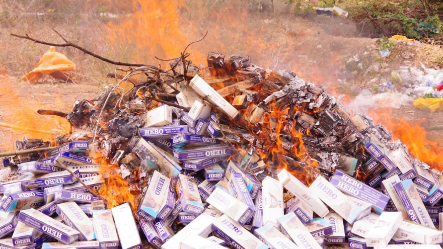 Bộ đội Biên phòng Đồng Nai tiêu hủy hơn 10.600 bao thuốc lá lậu
