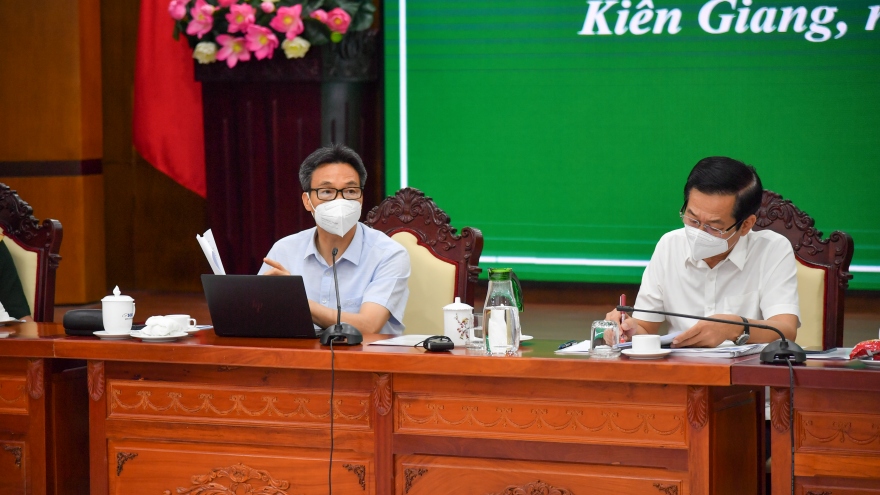 VOV.VN - Chiều 17/9, Phó Thủ tướng Chính phủ Vũ Đức Đam cùng Thứ trưởng Bộ Y tế và các thành viên trong đoàn công tác có buổi làm việc trực tiếp với lãnh đạo tỉnh Kiên Giang và các ngành chức năng của tỉnh về công tác phòng chống dịch bệnh.