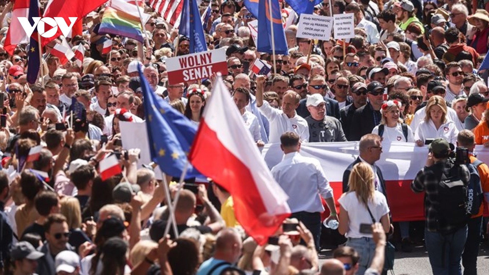 VOV.VN - Ngày 1/10, hai tuần trước cuộc tổng tuyển cử, gần một triệu người đã tham gia biểu tình phản đối các chính sách hiện hành của Đảng cầm quyền Pháp luật và Công lý (PiS) ở thủ đô Warsaw, Ba Lan do đảng Cương lĩnh Dân sự (PO) đối lập tổ chức.