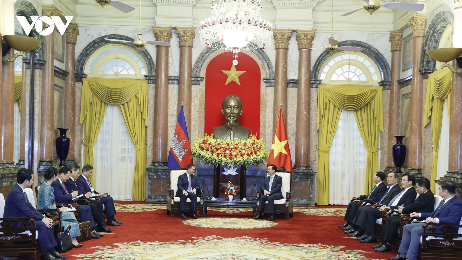 VOV.VN - Chiều 14/6, tại Phủ Chủ tịch, Chủ tịch nước Tô Lâm gặp mặt đoàn đại biểu người có uy tín tiêu biểu trong đồng bào dân tộc thiểu số ở khu vực biên giới, hải đảo nhân dịp về Hà Nội dự Chương trình "Điểm tựa của bản làng" lần thứ hai, năm 2024 do Bộ Biên tập Tạp chí Cộng sản, Ủy ban Trung ương Mặt trận Tổ quốc Việt Nam và Bộ Tư lệnh Bộ đội Biên phòng tổ chức.