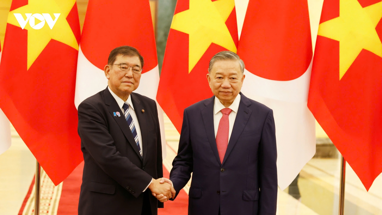 VOV.VN - Chiều 27/4/2025, tại Trụ sở Trung ương Đảng, Tổng Bí thư Tô Lâm đã hội kiến Chủ tịch Đảng Dân chủ Tự do, Thủ tướng Nhật Bản Ishiba Shigeru nhân dịp Thủ tướng Nhật Bản Ishiba và Phu nhân sang thăm chính thức Việt Nam.