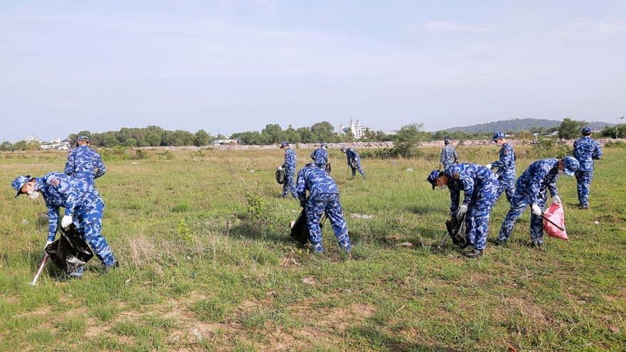 VOV.VN - Tích cực hưởng ứng “Ngày vì môi trường Phú Quốc” do Ủy ban nhân dân thành phố Phú Quốc, tỉnh Kiên Giang phát động, hôm nay 5/4, Bộ Tư lệnh Vùng Cảnh sát biển 4 đã huy động hàng chục cán bộ, chiến sĩ tham gia vệ sinh môi trường, góp phần chỉnh trang đô thị “Xanh - sạch - đẹp” trên địa bàn thành phố.