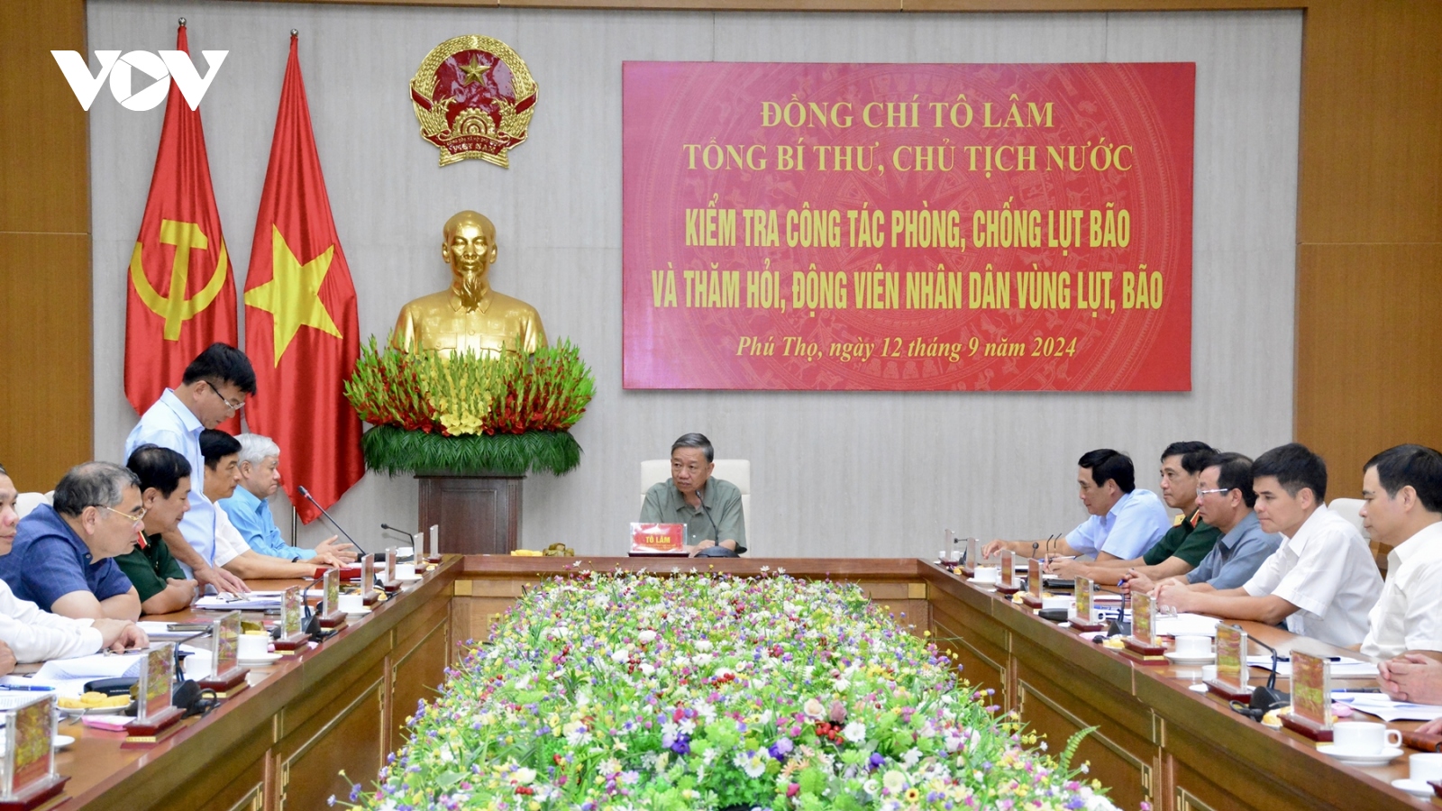 VOV.VN - Chiều tối 12/9, tại thành phố Việt Trì, Tổng Bí thư, Chủ tịch nước Tô Lâm đã làm việc với lãnh đạo tỉnh Phú Thọ và lắng nghe những đề xuất, kiến nghị của tỉnh trong khắc phục hậu quả do bão, lũ gây ra.