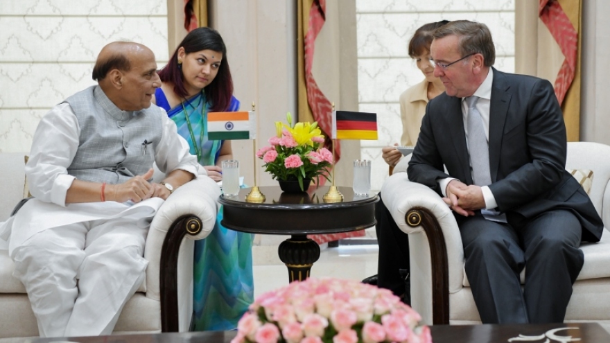 VOV.VN - Bộ trưởng Quốc phòng Ấn Độ Rajnath Singh hôm nay (6/6) đã có cuộc hội đàm với người đồng cấp Đức Boris Pistorius tại thủ đô New Delhi. Tại đây, hai bên bàn nhiều vấn đề hợp tác quốc phòng song phương, trọng tâm là hợp tác công nghiệp quốc phòng.