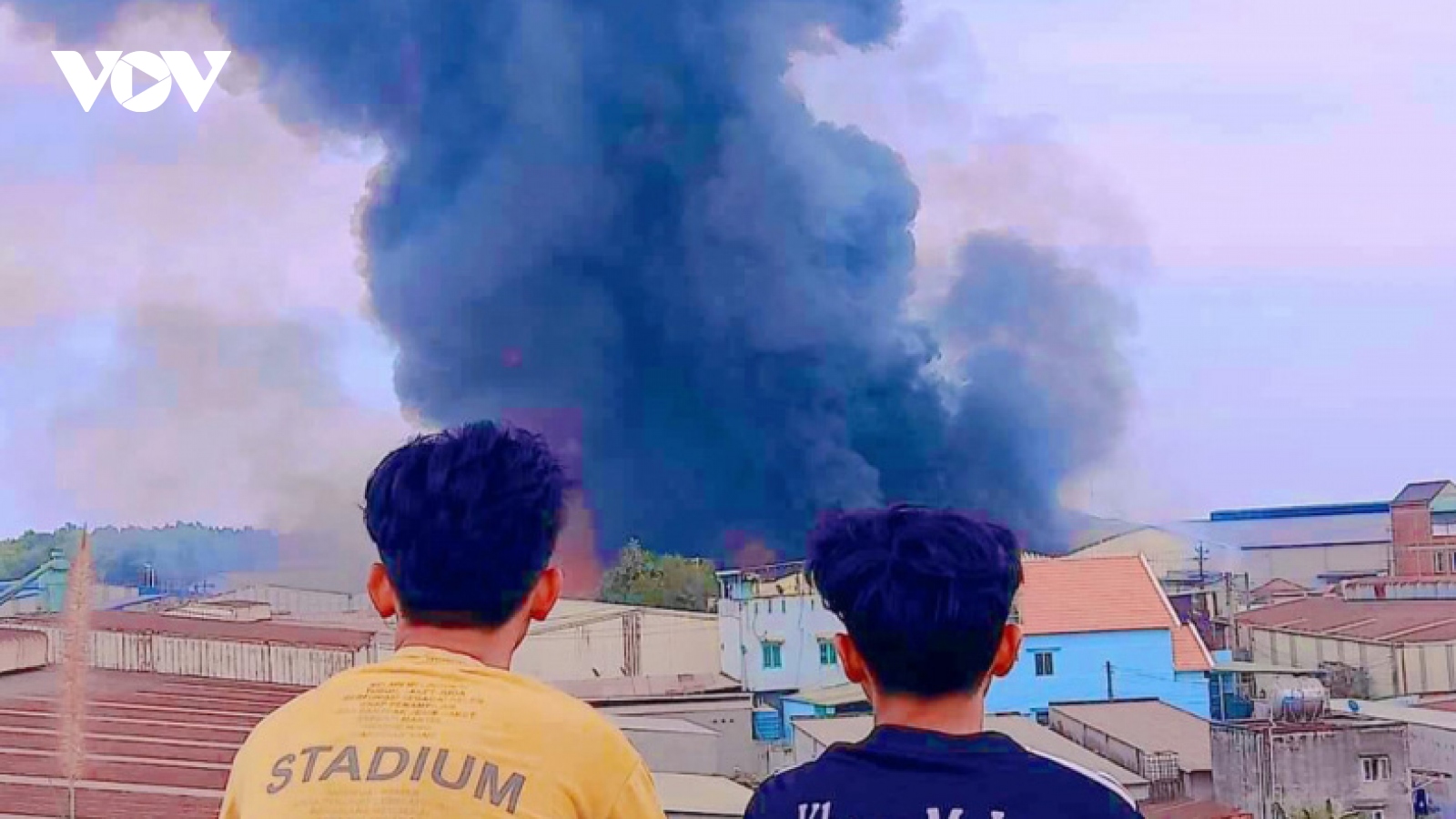 VOV.VN - Chiều 31/12, lực lượng chữa cháy Công an tỉnh Bình Dương đang tiếp tục phun nước làm mát, tránh cho đám cháy tại công ty sản xuất nội thất rộng 8.900m2 ở thị xã Tân Uyên bùng phát trở lại.