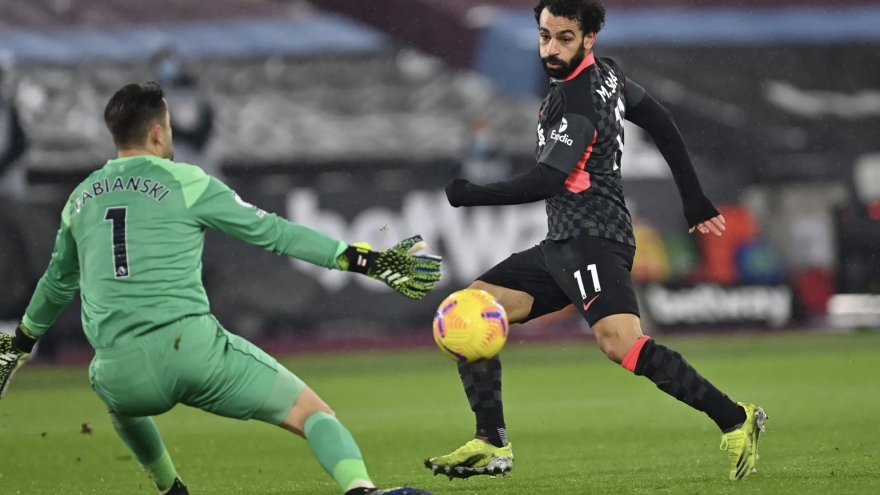 VOV.VN - Salah chấm dứt chuỗi 6 vòng đấu không ghi bàn ở Ngoại hạng Anh mùa này với cú đúp vào lưới Fabianski, góp phần giúp Liverpool giành thắng lợi 3-1 trên sân West Ham.