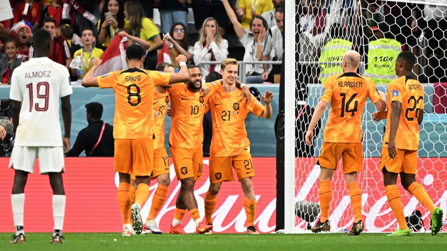 VOV.VN - Hà Lan tiến vào vòng 1/8 World Cup 2022 với tư cách đội nhất bảng A, sau khi giành chiến thắng 2-0 trước Qatar nhờ các pha làm bàn của Cody Gakpo và Frenkie De Jong.