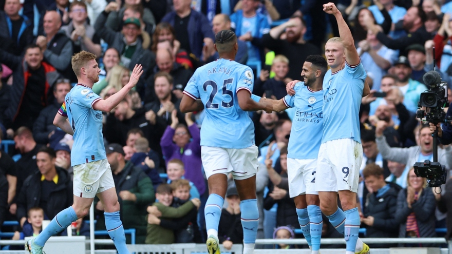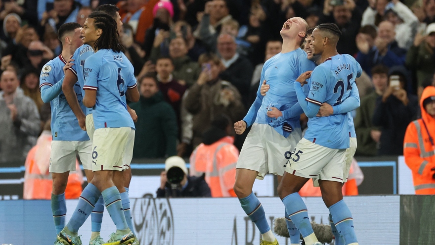 VOV.VN - Man City giành thắng lợi 2-1 trước Fulham trên sân nhà nhờ pha lập công trên chấm phạt đền ở phút 90'+5 của Haaland trong trận đấu mà đội chủ nhà chỉ còn 10 người trên sân từ phút 26.