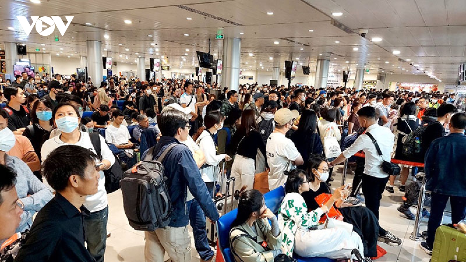 VOV.VN - Những ngày qua, sân bay Tân Sơn Nhất đón một lượng lớn hành khách đến để về quê ăn Tết. Con số này đang tăng lên hằng ngày dẫn đến tình trạng nhiều chuyến bay bị trễ chuyến.
