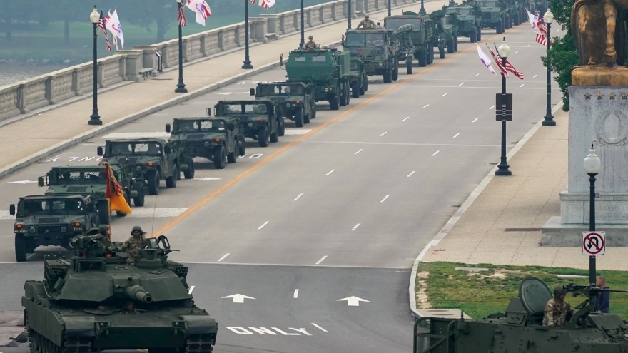 VOV.VN - Chiều tối 14/6 (sáng 15/6 giờ Hà Nội), lễ duyệt binh kỷ niệm 250 năm thành lập Lục quân Mỹ diễn ra tại thủ đô Washington với quy mô lớn nhất kể từ sau Chiến tranh Vùng Vịnh năm 1991.