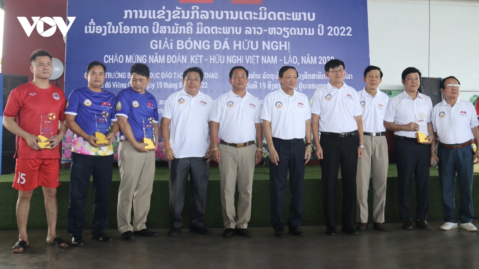 VOV.VN - Chiều 19/8, tại Thủ đô Vientiane, Bộ Giáo dục và Thể thao Lào phối hợp Đại sứ quán Việt Nam tại Lào tổ chức giao lưu bóng đá hữu nghị chào mừng Năm đoàn kết hữu nghị Việt Nam-Lào 2022.