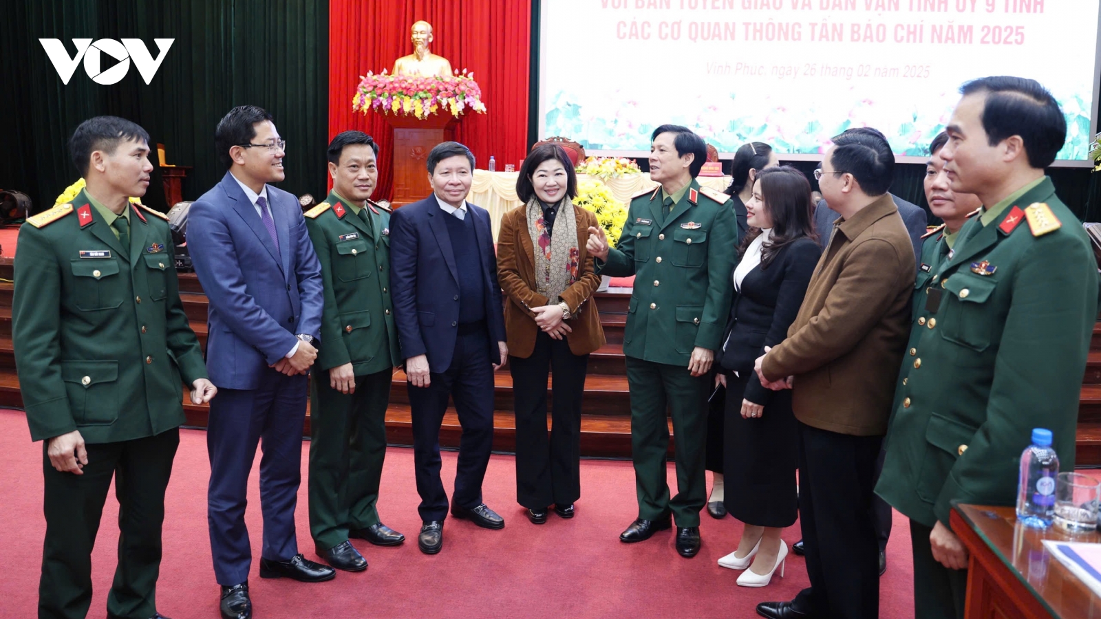 VOV.VN - Ngày 26/2, tại tỉnh Vĩnh Phúc diễn ra hội nghị gặp mặt giữa Cục chính trị Quân khu 2 với Ban Tuyên giáo và Dân vận Tỉnh uỷ 9 tỉnh và các cơ quan thông tấn báo chí năm 2025.