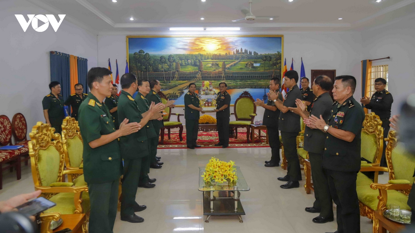VOV.VN - Nhân dịp Tết Chol Chnam Thmay - Tết cổ truyền của đồng bào Khmer, từ ngày 28 đến 30/3, Đoàn công tác của Quân khu 5 do Trung tướng Trịnh Đình Thạch, Chính ủy Quân khu 5 làm Trưởng đoàn đã tới thăm, chúc tết các đơn vị quân đội và địa phương của Vương quốc Campuchia.