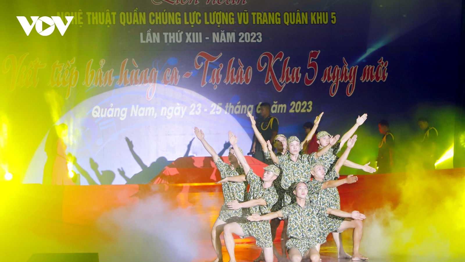 VOV.VN - Liên hoan Nghệ thuật quần chúng lực lượng vũ trang Quân khu 5 lần thứ XIII - năm 2023 thu hút hơn 500 cán bộ, chiến sĩ của 17 đơn vị thuộc Quân khu 5 và Bộ Chỉ huy Quân sự thành phố Đà Nẵng, tỉnh Quảng Nam và tỉnh Quảng Ngãi tham gia.