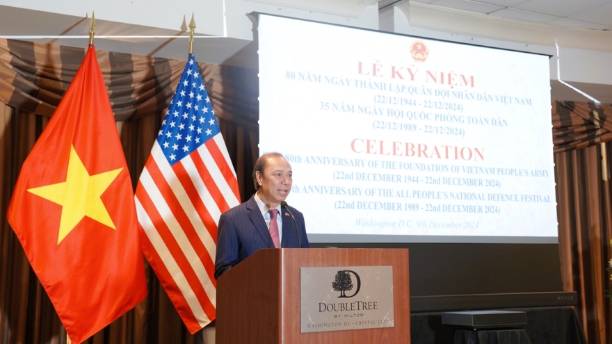 VOV.VN - Tối 9/12, tại thủ đô Washington D.C, Đại sứ quán Việt Nam và Cơ quan Tùy viên Quốc phòng Việt Nam tại Mỹ đã trang trọng tổ chức lễ kỷ niệm 80 năm ngày thành lập Quân đội Nhân dân Việt Nam (22/12/1944-22/12/2024) và 35 năm Ngày Hội Quốc phòng toàn dân (22/12/1989-22/12/2024).