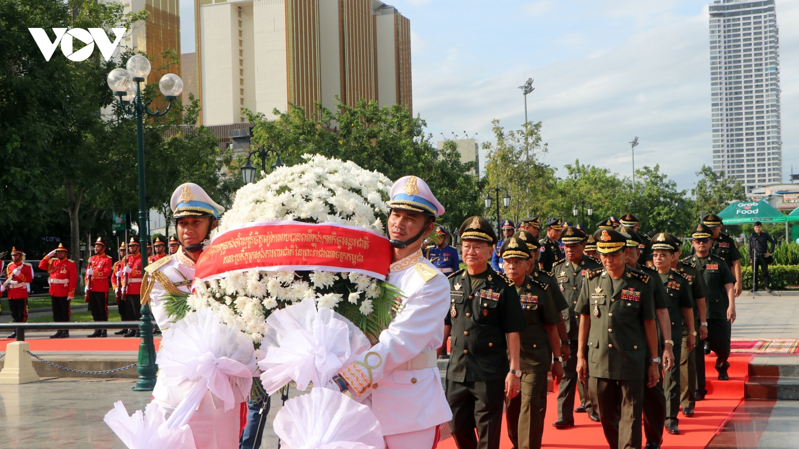 VOV.VN - Sáng 7/1, tại Hà Nội, Ủy ban Trung ương Mặt trận Tổ quốc Việt Nam, Liên hiệp các tổ chức hữu nghị Việt Nam và UBND TP Hà Nội phối hợp tổ chức Lễ kỷ niệm 45 năm Ngày Chiến thắng chiến tranh bảo vệ biên giới Tây Nam của Tổ quốc và cùng quân dân Campuchia chiến thắng chế độ diệt chủng Pol Pot (7/1/1979 - 7/1/2024).
