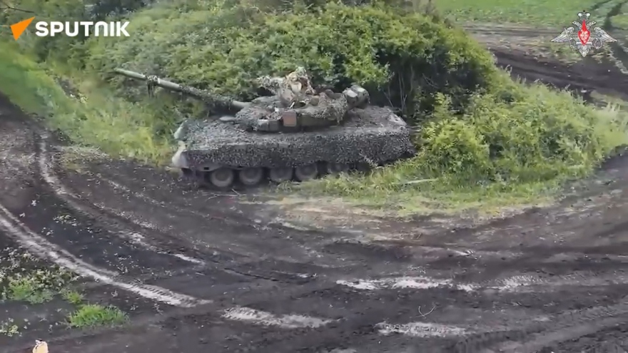 VOV.VN - Bộ Quốc phòng Nga ngày 10/7 công bố đoạn video xe tăng T-80BV phá hủy một cứ điểm có hơn 50 binh lính Ukraine bên trong, trong đó có cả các nhóm tình báo. Địa điểm cụ thể không được tiết lộ.