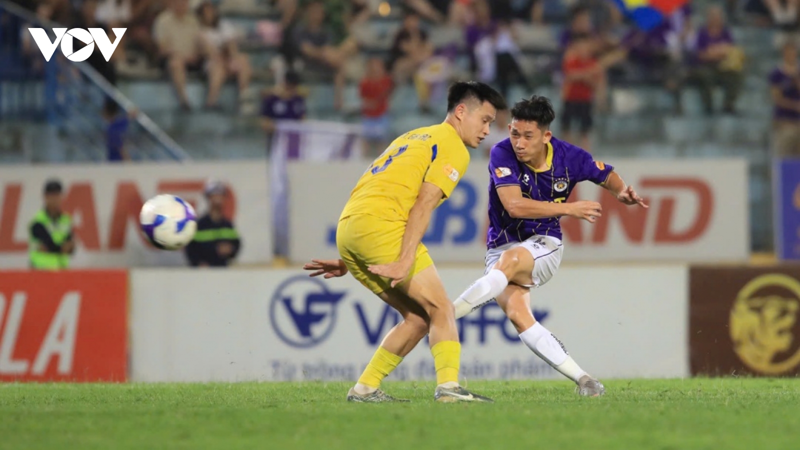 VOV.VN - Nhọc nhằn vượt qua Quảng Nam với tỷ số 2-1 trên sân nhà Hàng Đẫy trong khuôn khổ vòng 20 V-League 2024/2025, Hà Nội FC bám sát Nam Định trong cuộc đua vô địch.