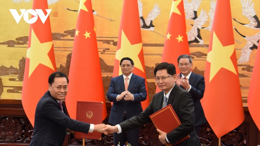 VOV.VN - Trong khuôn khổ chuyến thăm chính thức Trung Quốc, ngày 3/4/2024, tại thành phố Sùng Tả, Quảng Tây, Bộ trưởng Ngoại giao Bùi Thanh Sơn đã tiếp ông Lưu Ninh, Bí thư Đảng ủy Khu tự trị dân tộc Choang Quảng Tây, Trung Quốc.