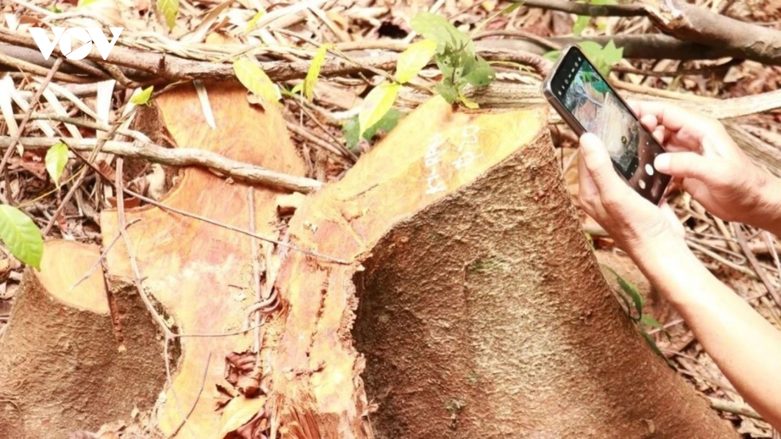 VOV.VN - Nhiều cây rừng có đường kính lớn từ 30-40cm ở thôn Tà Lêng, xã Đakrông, huyện Đakrông, tỉnh Quảng Trị đã bị các đối tượng bị đốn hạ, cưa xẻ. Nhiều khúc gỗ vẫn còn nằm lại tại hiện trường.
