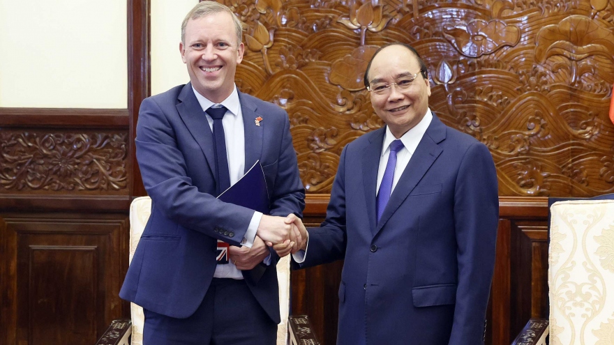 VOV.VN - Chiều nay (6/7), tại Phủ Chủ tịch, Chủ tịch nước Nguyễn Xuân Phúc tiếp Đại sứ Liên hiệp Vương Quốc Anh và Bắc Ireland Gareth Ward và Đại sứ Vương quốc Bỉ Paul Jansen chào từ biệt kết thúc nhiệm kỳ công tác tại Việt Nam.