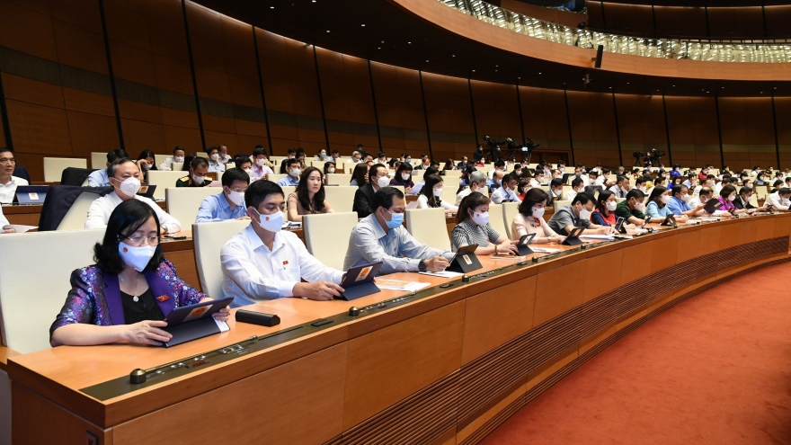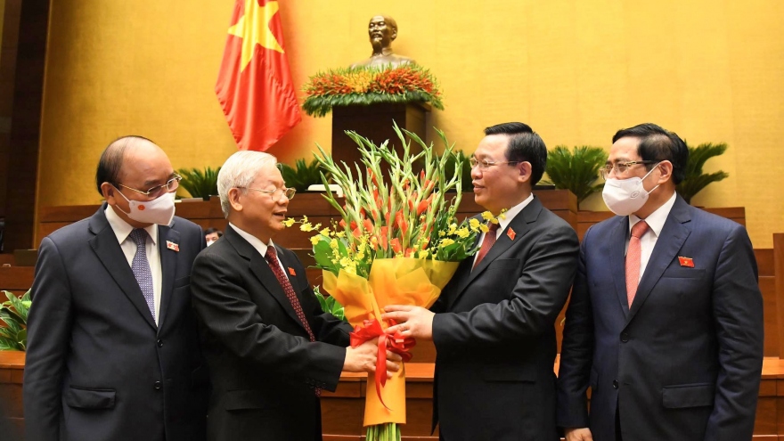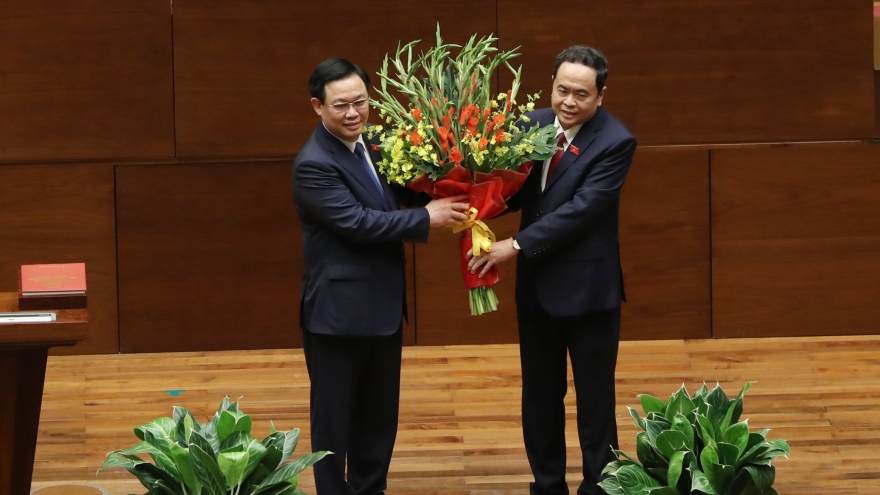 VOV.VN - 100% đại biểu Quốc hội có mặt tán thành Nghị quyết bầu Chủ tịch Quốc hội, cho thấy sự tín nhiệm rất cao của đại biểu Quốc hội với Chủ tịch Quốc hội khóa XV Vương Đình Huệ.