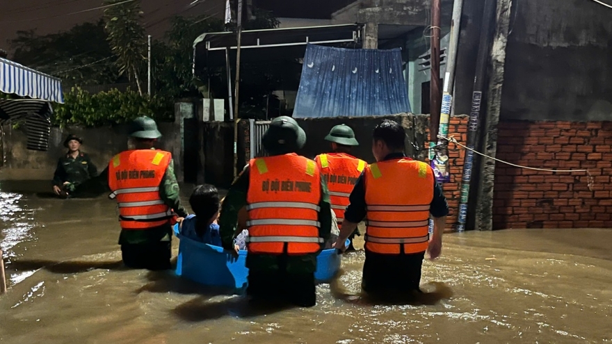VOV.VN - Mưa lớn làm Quốc lộ 1A đoạn qua xã Quảng Trạch, tỉnh Quảng Trị ngập sâu, lực lượng CSGT phải phân luồng, cảnh báo nguy hiểm cho người và phương tiện.