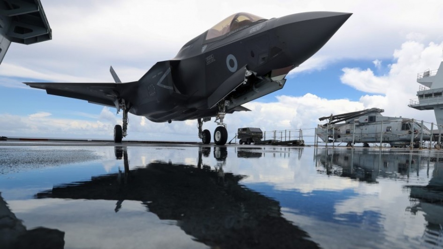 VOV.VN - Bộ Quốc phòng Anh thông báo một máy bay chiến đấu F-35B Lightning II hoạt động từ tàu sân bay HMS Queen Elizabeth đã rơi xuống Địa Trung Hải hôm 17/11.