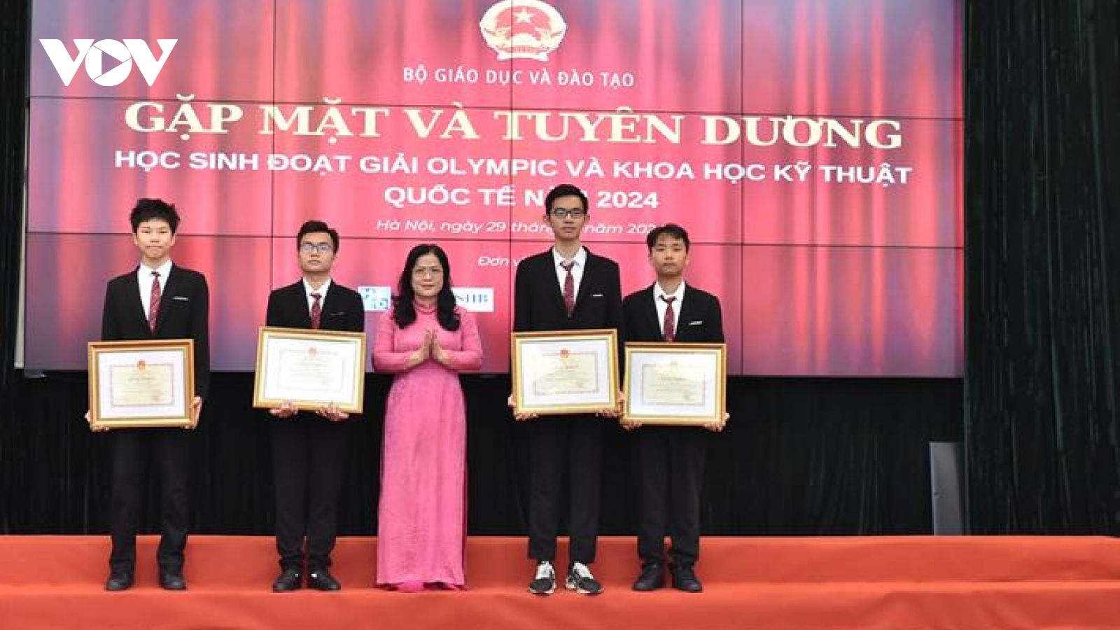 VOV.VN - Trong khuôn khổ chuỗi hoạt động tuyên dương học sinh đoạt giải Olympic và Khoa học kỹ thuật quốc tế năm 2024, hôm nay (29/12) đã diễn ra buổi gặp mặt và tuyên dương của Bộ Giáo dục và Đào tạo (GDĐT).