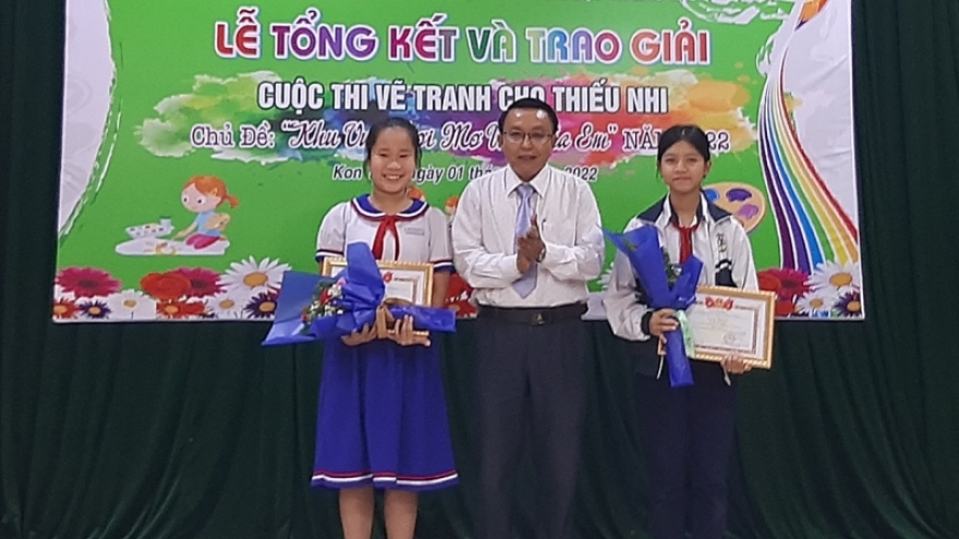 Trao giải cuộc thi vẽ tranh thiếu nhi Khu vui chơi mơ ước của em tại Kon Tum