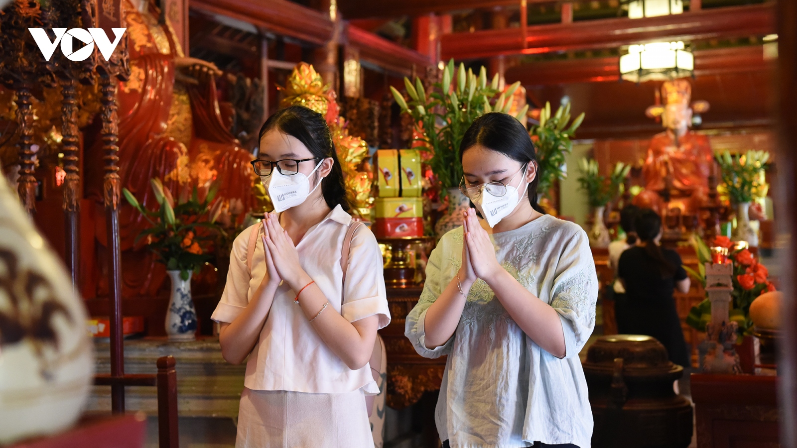 VOV.VN - Chỉ còn 5 ngày nữa kỳ thi tuyển sinh vào lớp 10 ở Hà Nội chính thức diễn ra, hôm nay, nhân ngày Rằm tháng 5, nhiều phụ huynh cùng sĩ tử đã đến Văn Miếu – Quốc Tử Giám cầu may mắn.