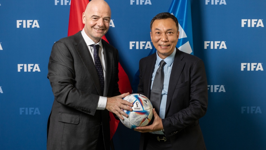VOV.VN - Quyền Chủ tịch VFF - Trần Quốc Tuấn đã có buổi làm việc với Chủ tịch FIFA - Gianni Infantino và Chủ tịch AFC - Salman Bin Ibrahim Al-Khalifa khi đến thăm cơ quan đại diện của FIFA tại Paris (Pháp).