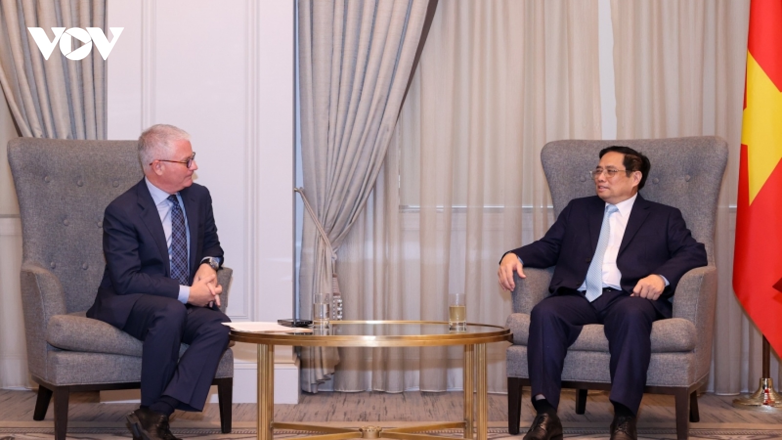 VOV.VN - Sáng 15/5, theo giờ địa phương, Thủ tướng Phạm Minh Chính tiếp ông Charles Kaye, Tổng giám đốc Warburg Pincus - là một trong những quỹ đầu tư tư nhân lâu đời nhất và lớn nhất trên toàn cầu.