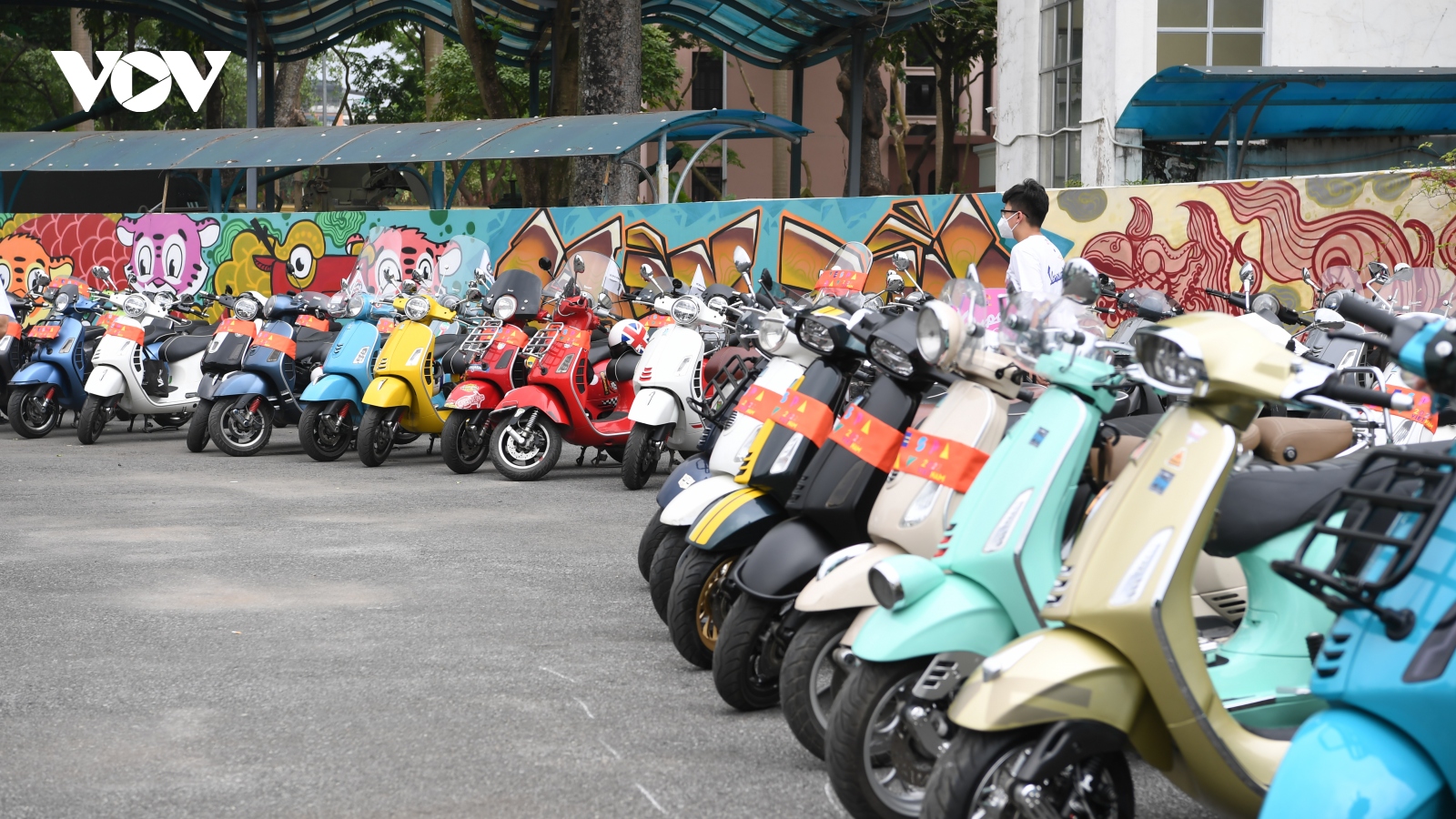 VOV.VN - Chiều 24/4, hàng nghìn người cùng nhiều mẫu xe Vespa cổ lẫn hiện đại đã có dịp quy tụ tại Ngày hội Vespa diễn ra tại Hoàng Thành Thăng Long (Hà Nội).