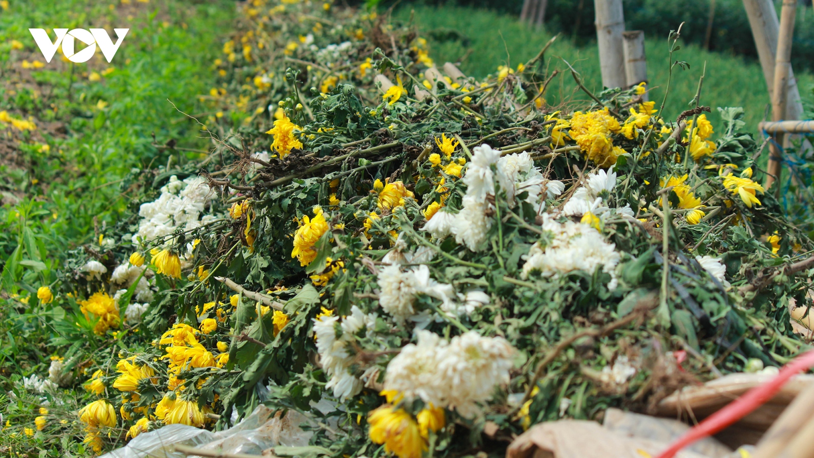 VOV.VN - Dịch COVID-19 bùng phát ngay trước Tết Nguyên đán, hàng trăm ruộng hoa vụ rằm tháng Giêng và lễ hội đầu năm ở Tây Tựu, làng hoa lớn nhất miền Bắc, rơi vào cảnh rớt giá, hoa chất đầy đường.