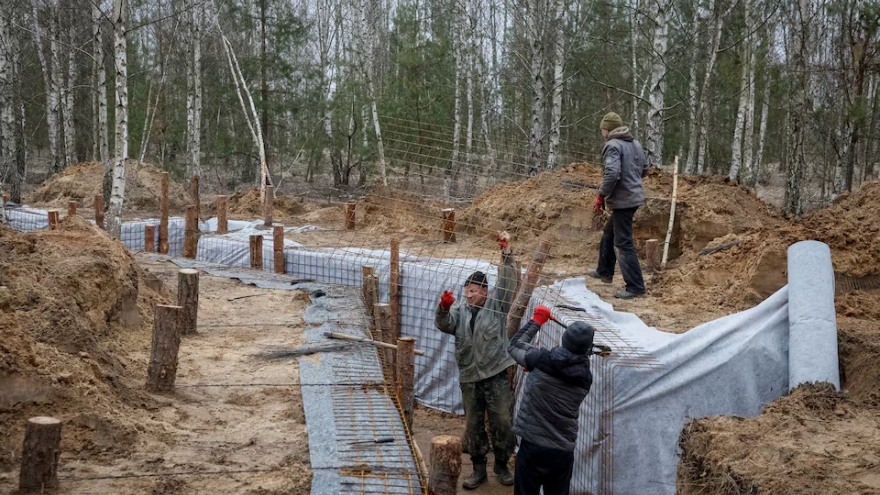 VOV.VN - Ukraine đang xây dựng các công sự mới gồm hệ thống phòng thủ răng rồng, dây thép gai, đào hào để đối phó với lực lượng Nga khi nước này chuyển sang chiến lược phòng thủ thay vì triển khai các cuộc tấn công.