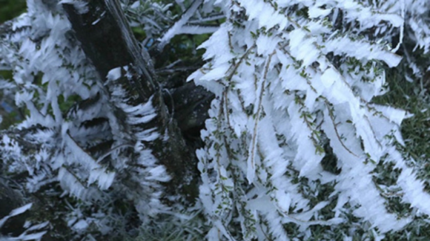 VOV.VN - Đêm qua và sáng sớm nay, nhiệt độ tại một số nơi ở huyện Mộc Châu, tỉnh Sơn La giảm còn 1 độ C khiến rét buốt và xuất hiện sương muối, băng giá.
