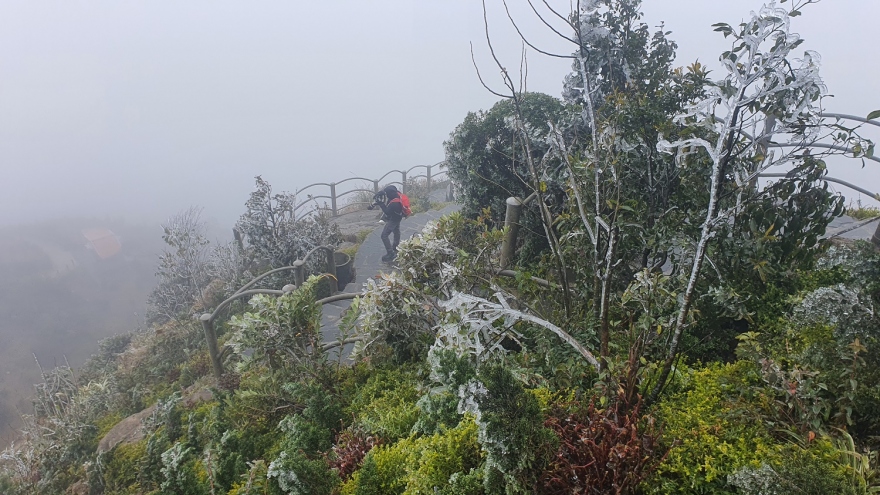 VOV.VN - Sáng 9/1, khu vực đỉnh đèo Ô Quý Hồ - nơi giáp ranh giữa thị xã Sa Pa, tỉnh Lào Cai với huyện Tam Đường, tỉnh Lai Châu nhiệt độ hạ xuống dưới 0 độ C khiến băng giá xuất hiện.
