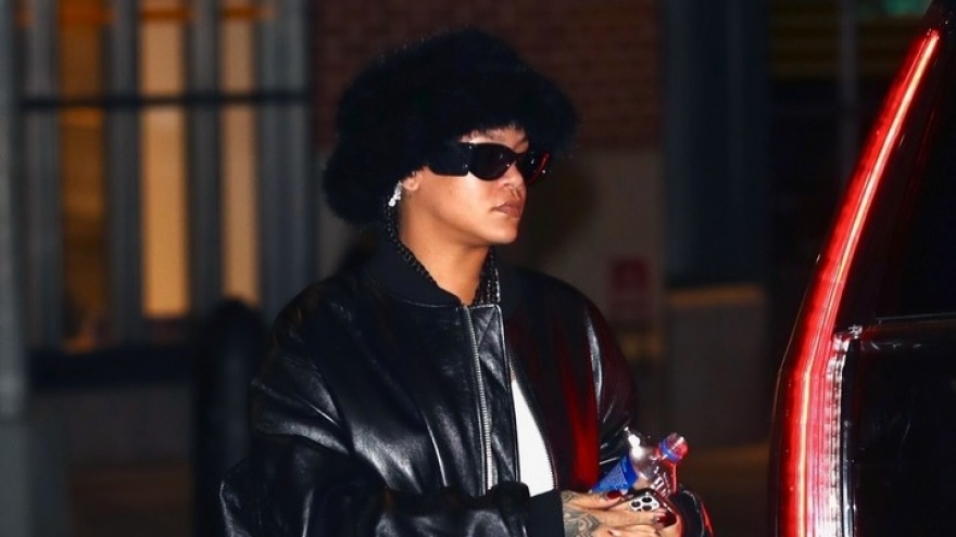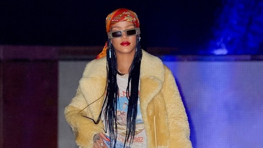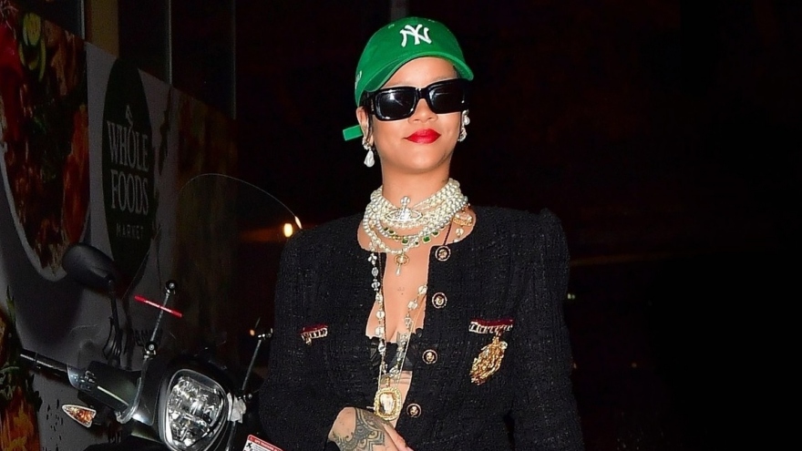 VOV.VN - Nữ ca sĩ Rihanna gây ấn tượng với lối trang điểm tinh tế, đeo trang sức đắt giá và diện đầm hai dây gợi cảm đến nhà hàng lúc nửa đêm cùng người thân.