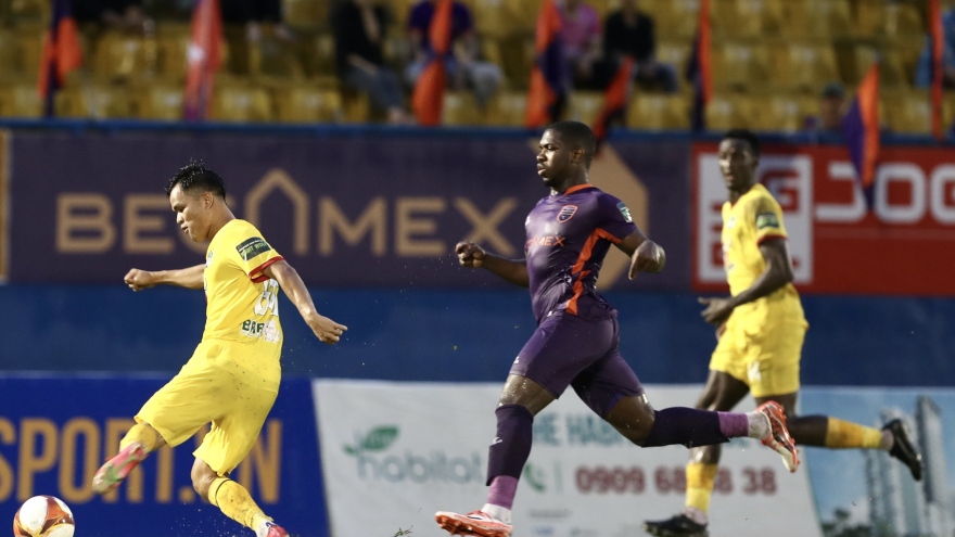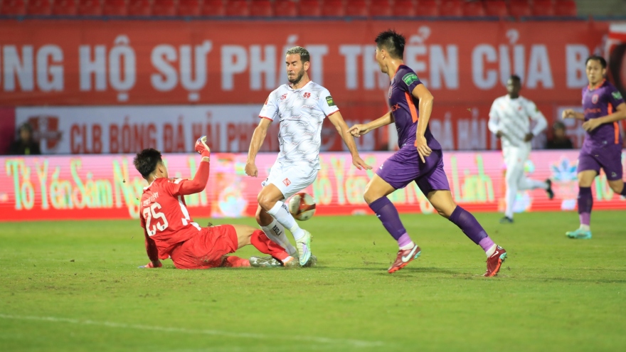 VOV.VN - Trong trận đấu hấp dẫn trên sân Lạch Tray, Hải Phòng đã phải rượt đuổi để có được trận hòa kịch tính 2-2 với Bình Dương ở vòng 1 V-League 2023.