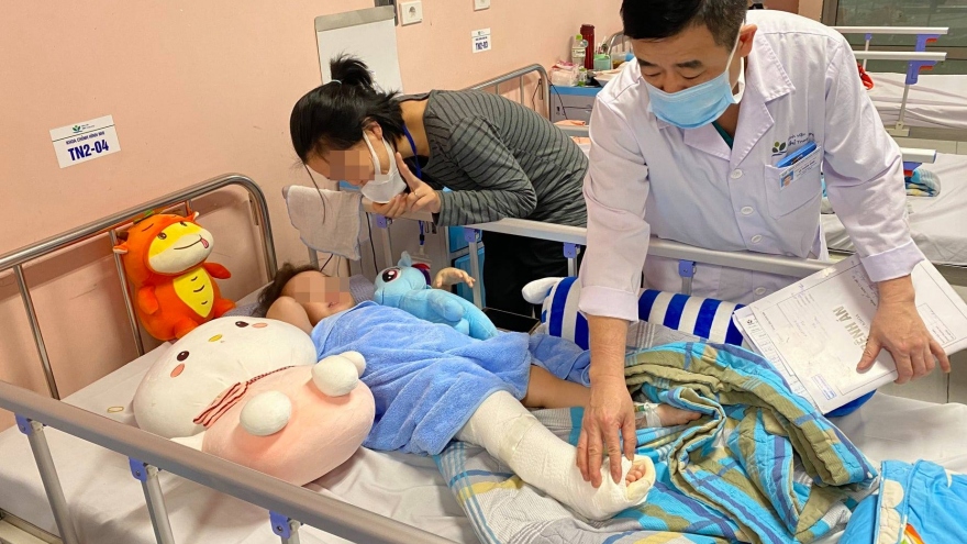 VOV.VN - BV Nhi Trung ương cho biết, khớp háng của bé được cố định bằng máng bột, đến nay đã hồi phục và không có triệu chứng đau. Dự kiến, sáng mai bé được xuất viện.