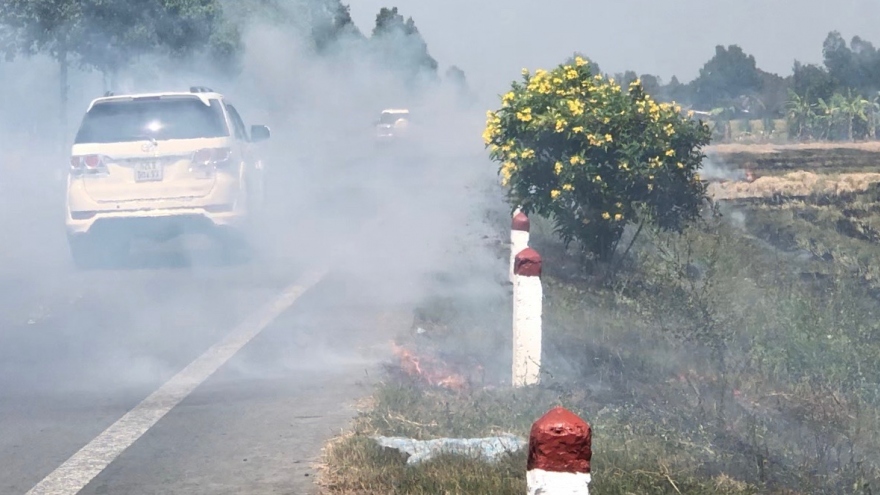 VOV.VN - Hiện nay, nông dân ĐBSCL đang thu hoạch lúa vụ Đông Xuân 2020 - 2021. Sau khi thu hoạch, người dân đốt rơm rạ làm khói bay mù mịt trên các tuyến đường, gây ô nhiễm môi trường, đe dọa sức khỏe cộng đồng và tiềm ẩn nhiều nguy cơ gây mất ATGT.